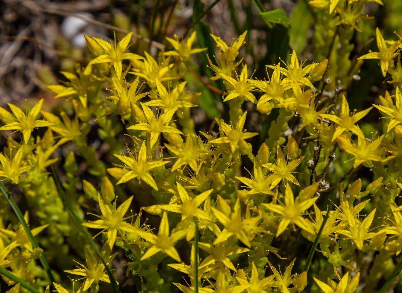Rozchodnik ostry to niewysoka roślina idealna na suche, słoneczne stanowiska. Latem, od czerwca do lipca, pokrywa się żółtymi, gwiazdkowatymi kwiatami. Doskonale sprawdza się na skalniakach, murach i w szczelinach między płytami. Praktycznie nie wymaga podlewania. Sadź go w odstępach 15–20 cm.